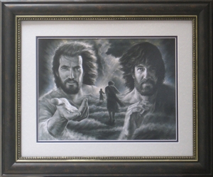 This piece captures that poignant moment between these two men: Jesus encouraging Peter, hand out-stretched, smiling at the faith of his disciple. Peter determined, full of trust, with his eyes completely foused on the Master.