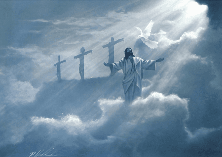 I asked Jesus by Danny Hahlbohm is an unframed Christian art piece that would make a great addition to any church or home décor setting. This touching Christian wall decor features Jesus Christ in the clouds looking up towards Heaven. The cross on which Jesus was crucified, along with the other two crosses that were next to Him are seen in the background, and we can see a dove which represents the Holy Spirit. Buy it for yourself or give it as a gift to your church or a good friend.