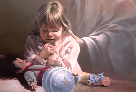 Night Prayers by Danny Hahlbohm is an unframed Christian art piece that would make an outstanding addition to any church children's department or any home décor setting. This Christian wall décor depicts the bedtime prayer of a little girl. It is a favorite of families with small children. Buy it for yourself or as a gift for your church or for a friend.